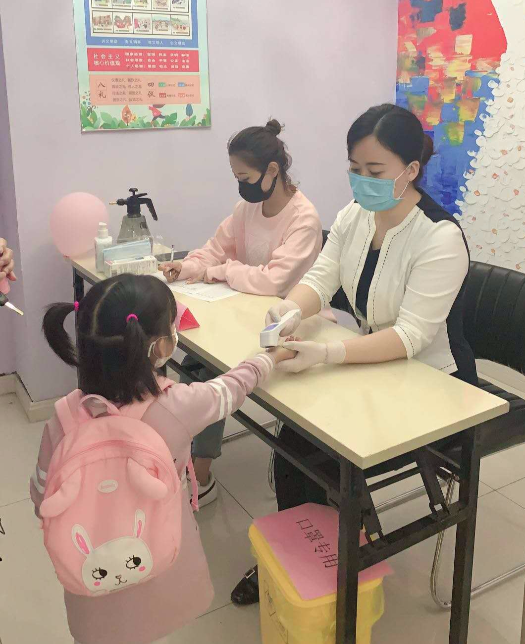 复课以前,我们严格按照教体局、卫健局、市场监管局等政府部门的要求,清除了卫生死角,对校区进行了严格的消毒,采购和储备了足够的防疫物资。对教职工和学生开展了健康监测,严格执行校园封闭管理,按照标准流程开展了入校演练。保证孩子的生命安全是我们七色光教育人的良知,更是我们的使命与责任。